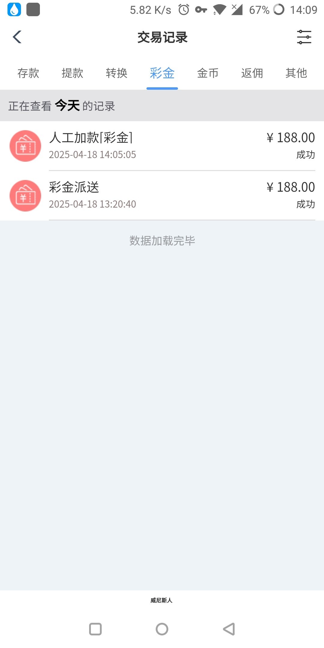 登录账号提示登录彩金,送了188。