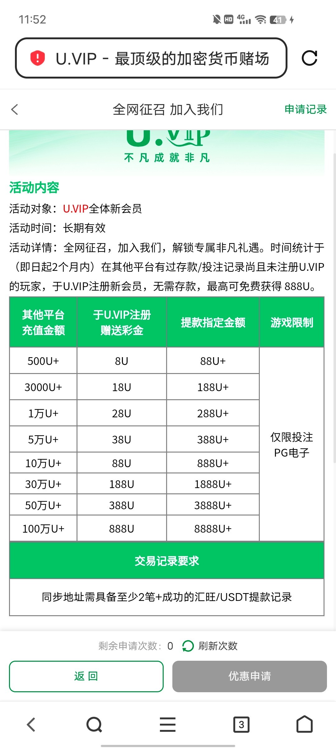 时间统计于(即日起2个月内)在其他平台有过存款/投注记录,自主申请