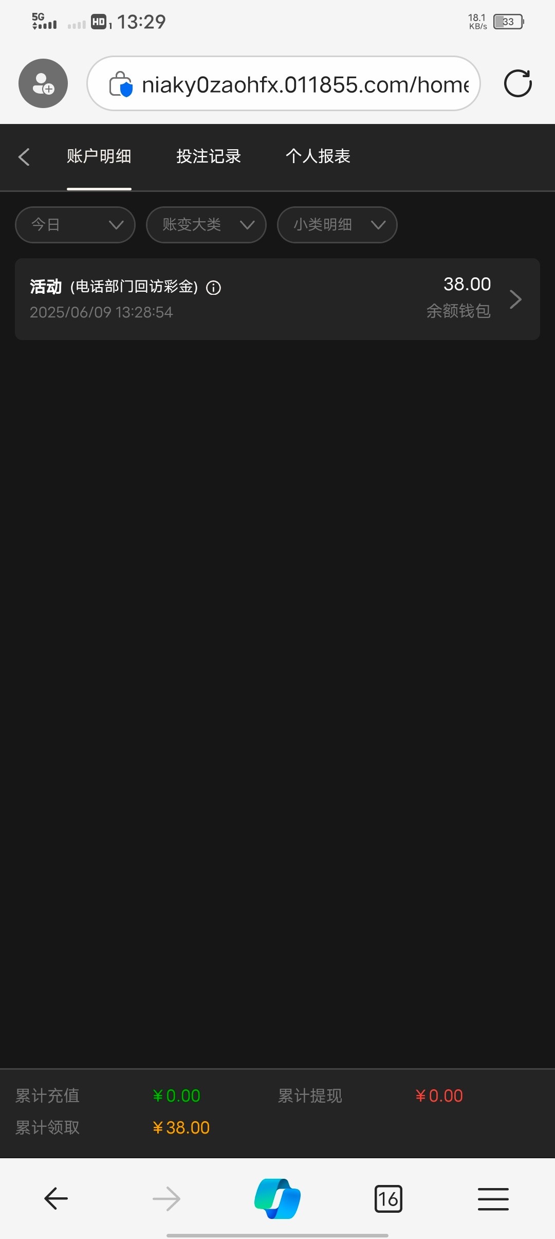 今天上号看见的,送了38,大家可以登录看看 地址 3016.com