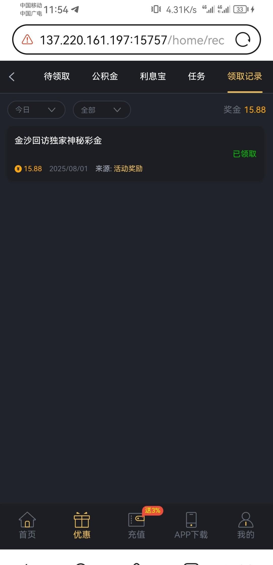 没接到电话上号就看到有神秘彩金,没充值过有号的上去看看,网址9018.com