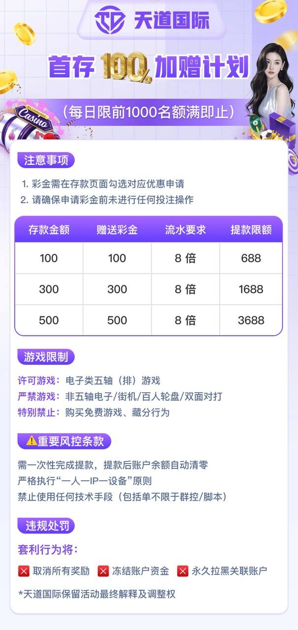 【天道国际】送20首存100+100