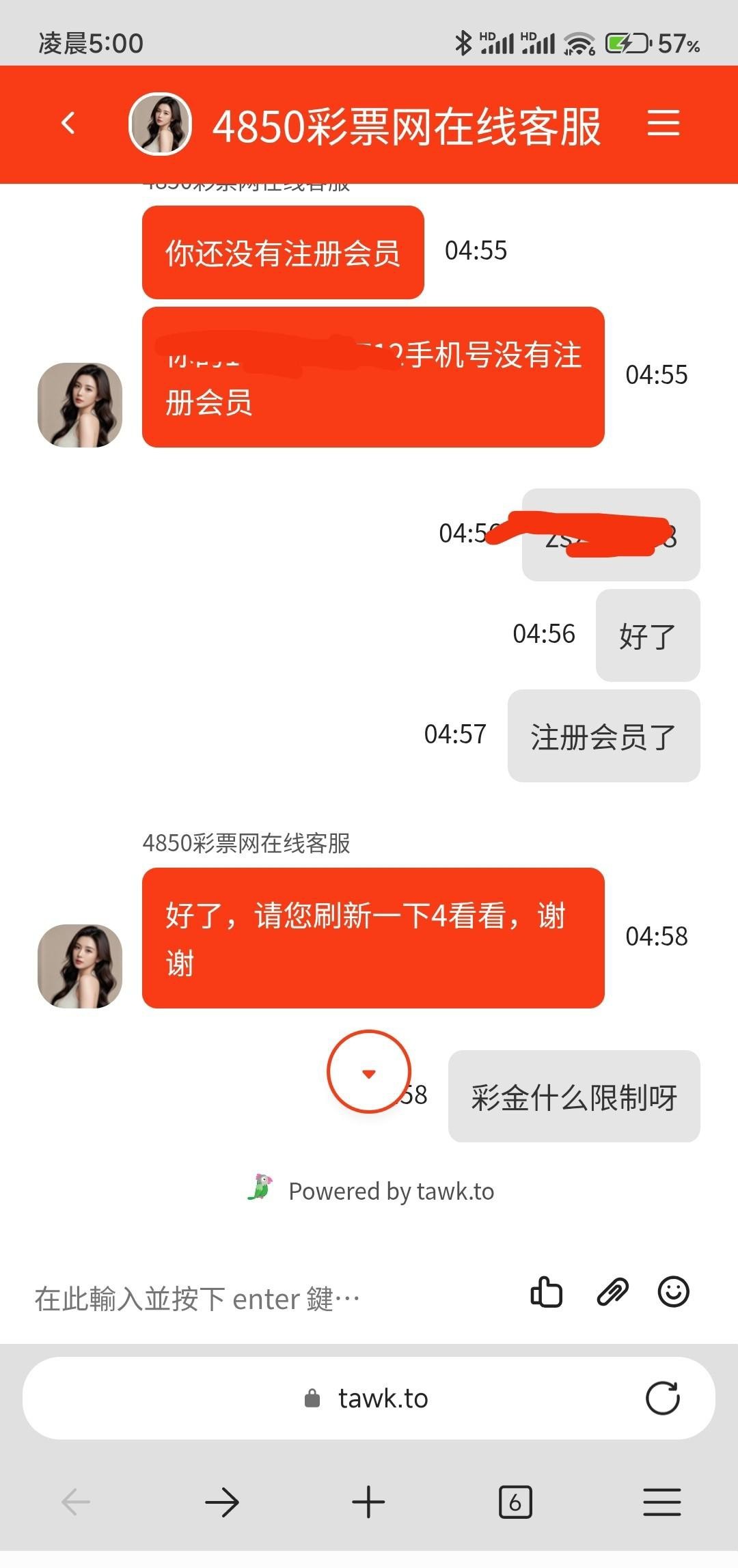 之前那个手机号电话彩金领过58 就想着用这个手机号碰碰看没想到就给了28 账号还没注册直接去碰瓷的4850.com