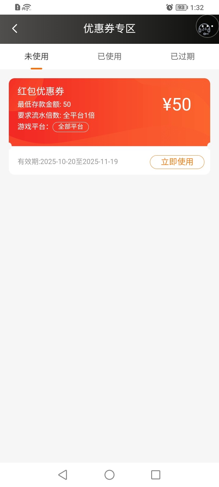优惠券感觉没啥用,还不是要充50也就是充50打优惠券的一倍流水加充值的50也就是打100流水方可提现最低一百,感觉没用。