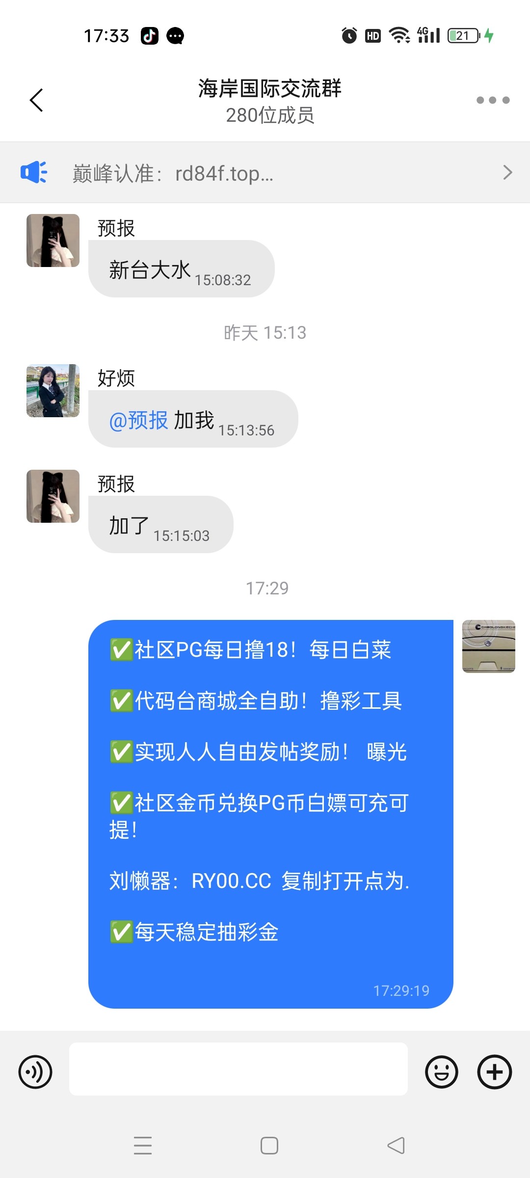 注:转发交流群 不是广告群