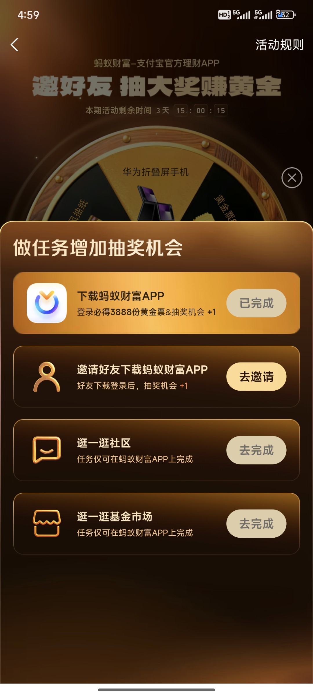 支付宝理财里面搜黄金,点进去直接抽奖