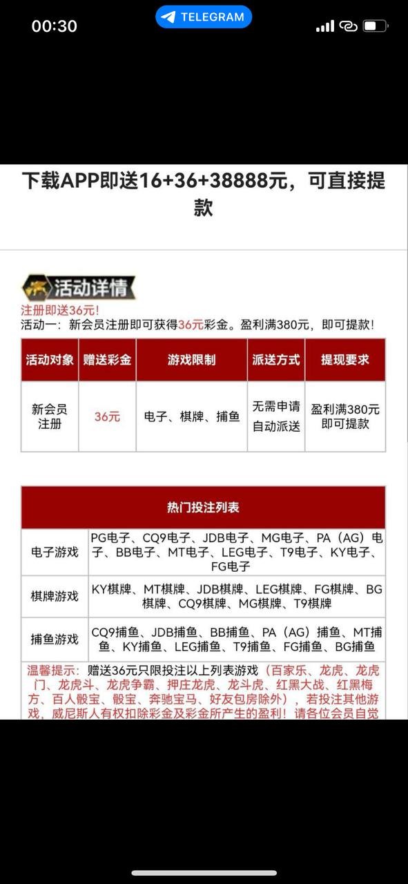 活动:注册下载送36 盈利至380可提 限制(电子、棋牌、捕鱼)