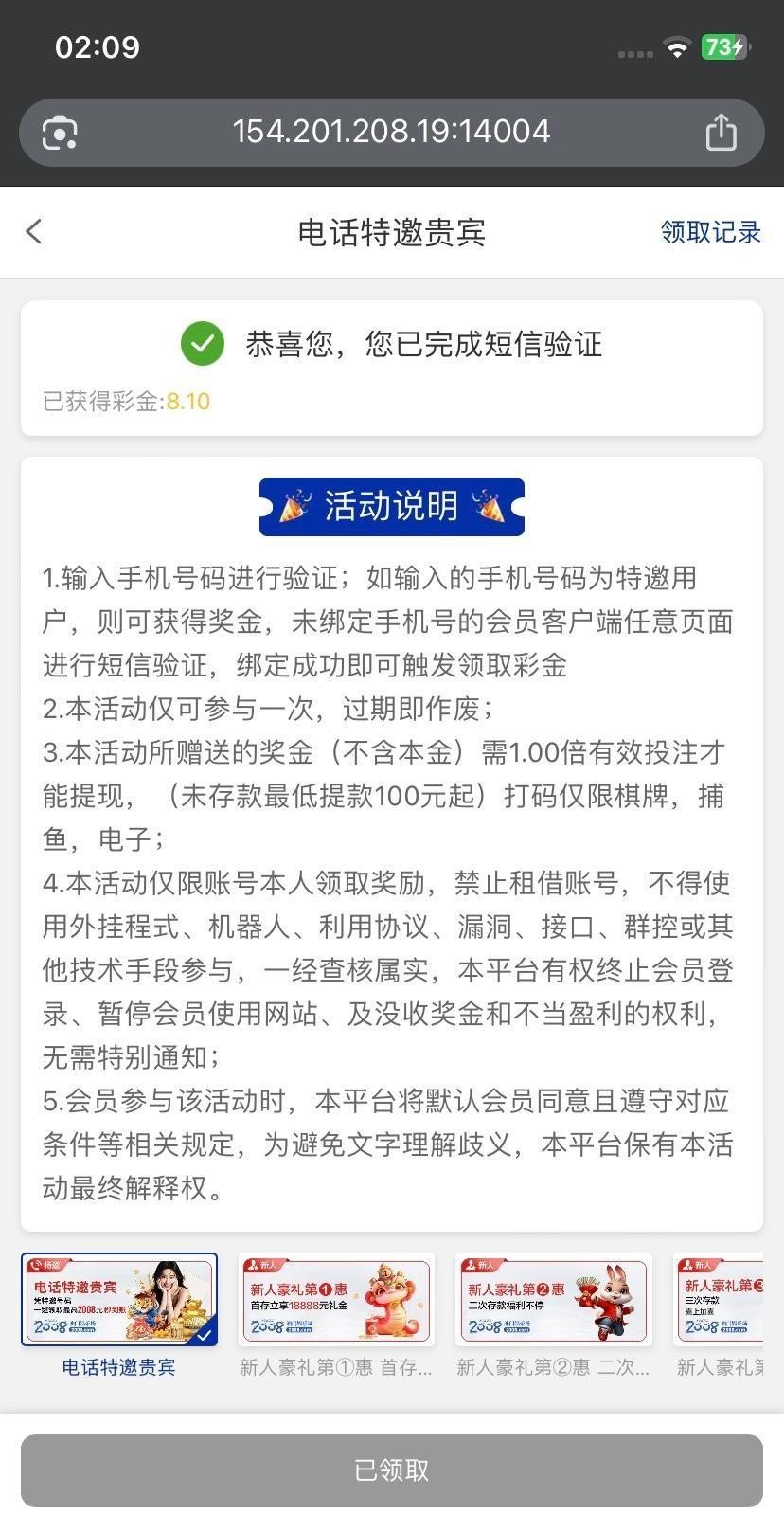 2005系列电话特邀以前注册的领取不了的现在可以领取了 我以前也是活动开始后绑定手机号才可以领取