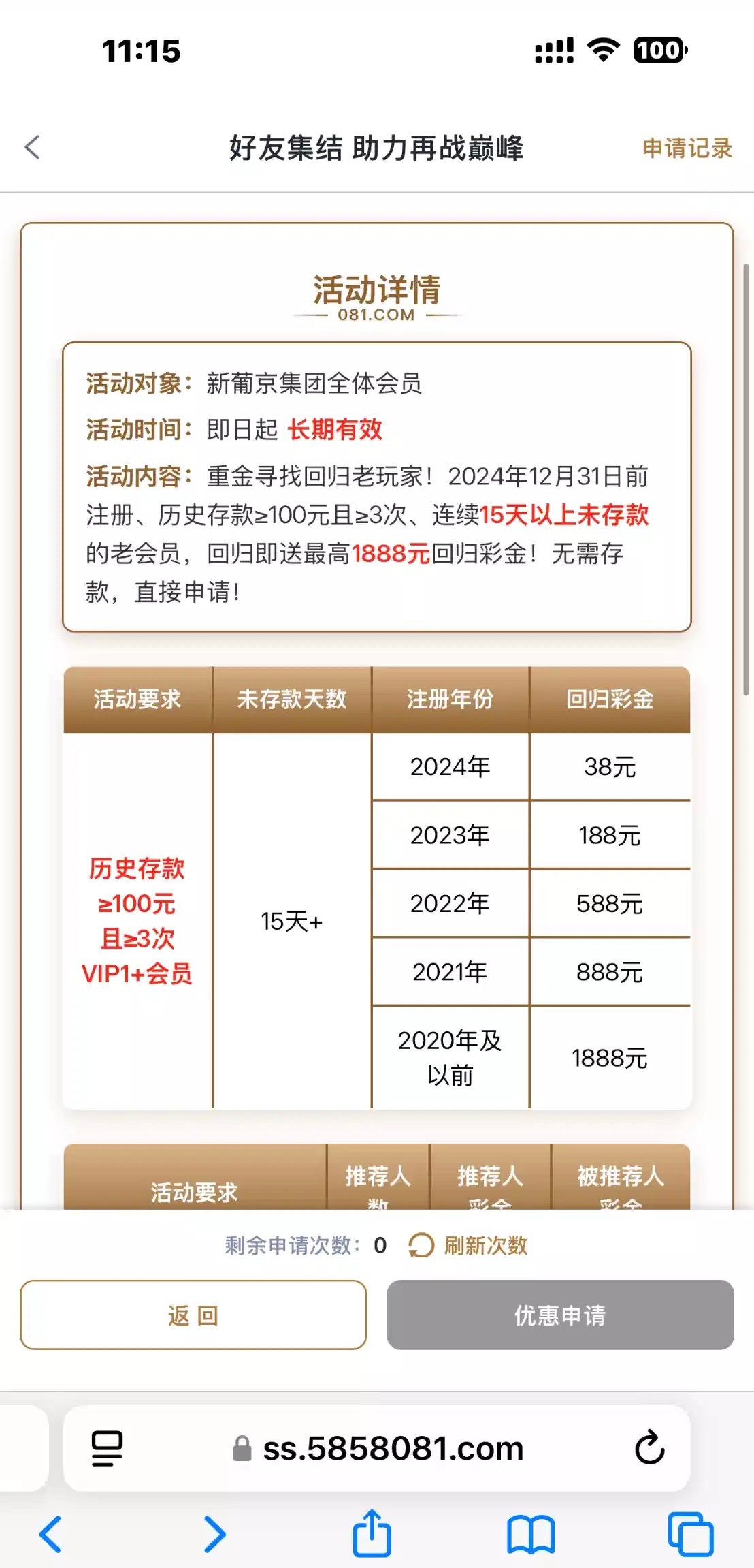 081改版了界面 之前领过这个豪礼的可以重新申请继续领 要看清活动内容 之前申请过的还能申请一次链接081.com