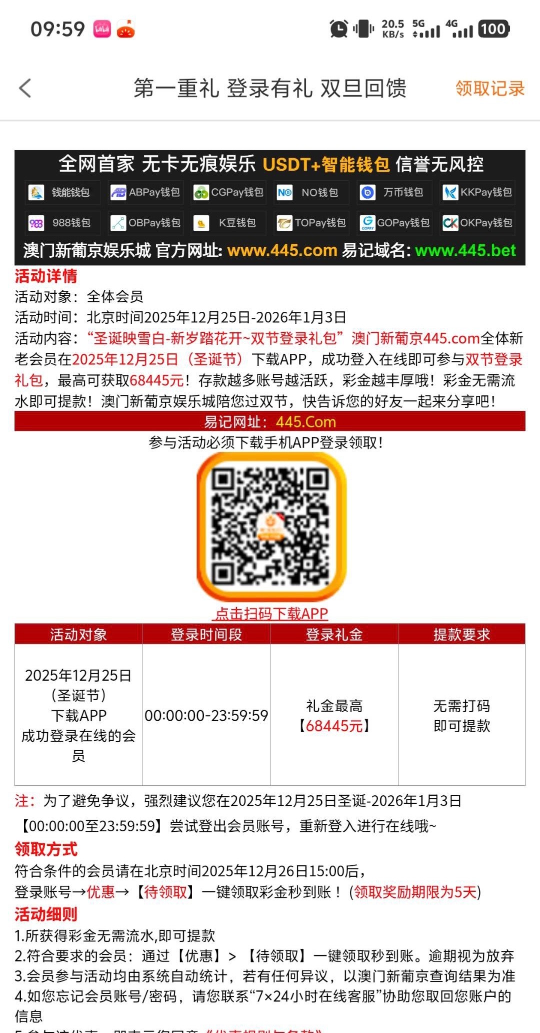 新葡京445 25号下载APP登录第二天下午三点领取双旦回馈礼金,有历史总存款的还有存款彩金
