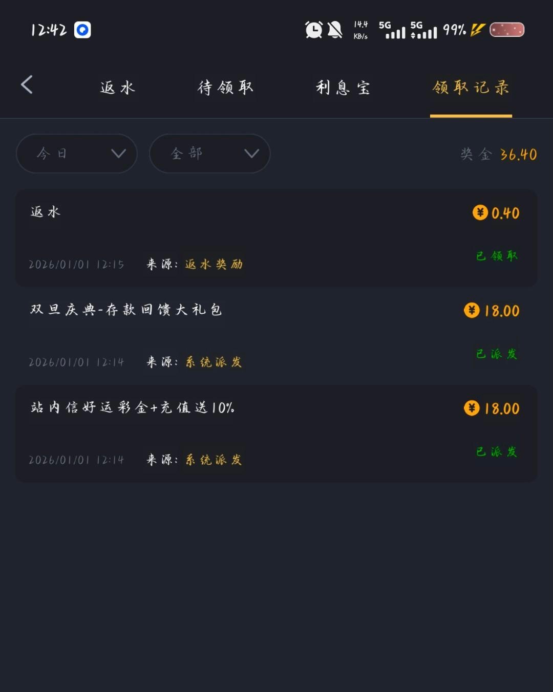 威尼斯人送36今天元旦上去领了两个18看图片