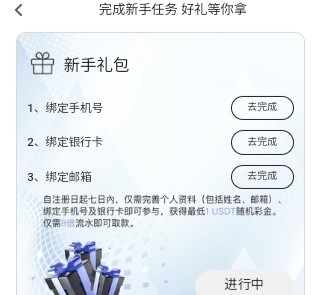 新人绑定彩金最低1USDT
