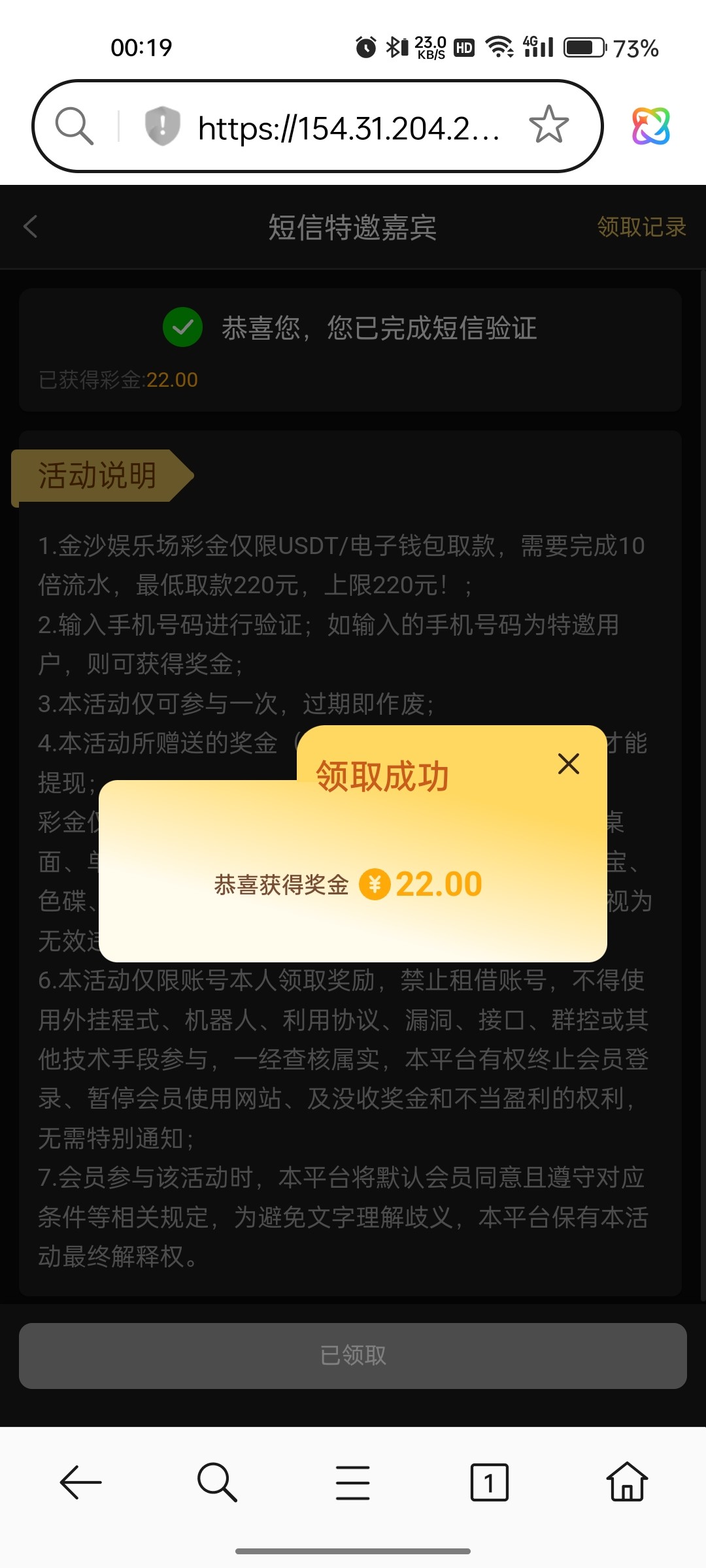金沙短信特邀 接码验证22彩金 有就是有没有就没有, 白嫖即可