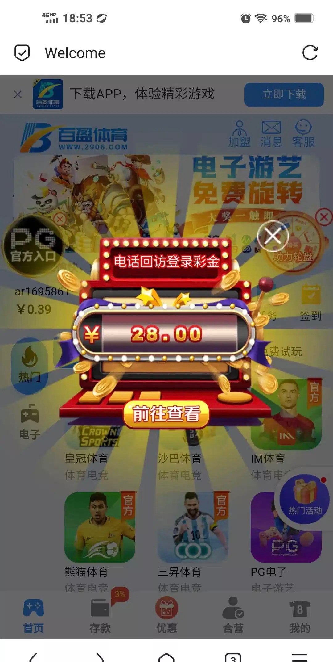 冲过一百,刚登陆自动跳出来,送了28,有号登录看看 链接2906.com