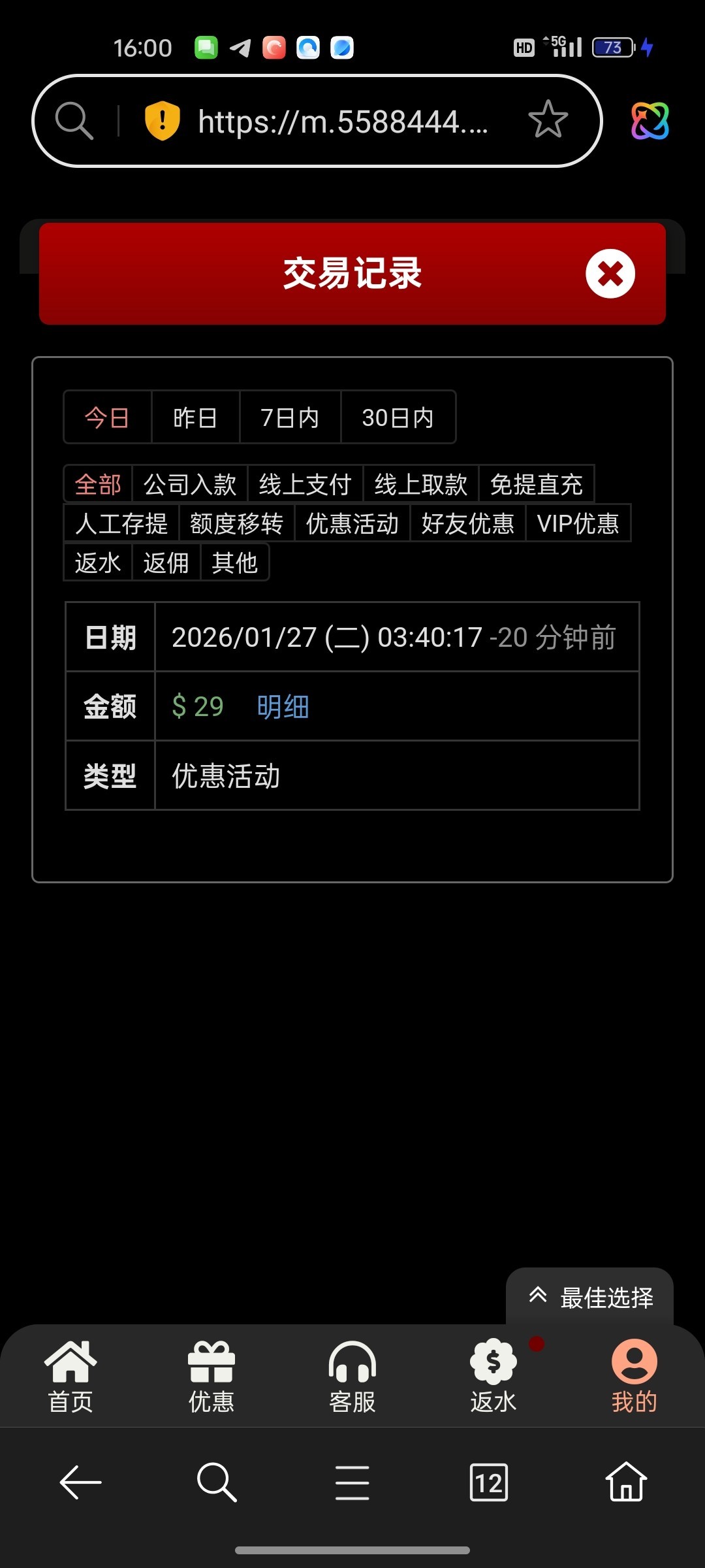 特邀注册账号秒送的,打电话来的我没有打出来不建议充值