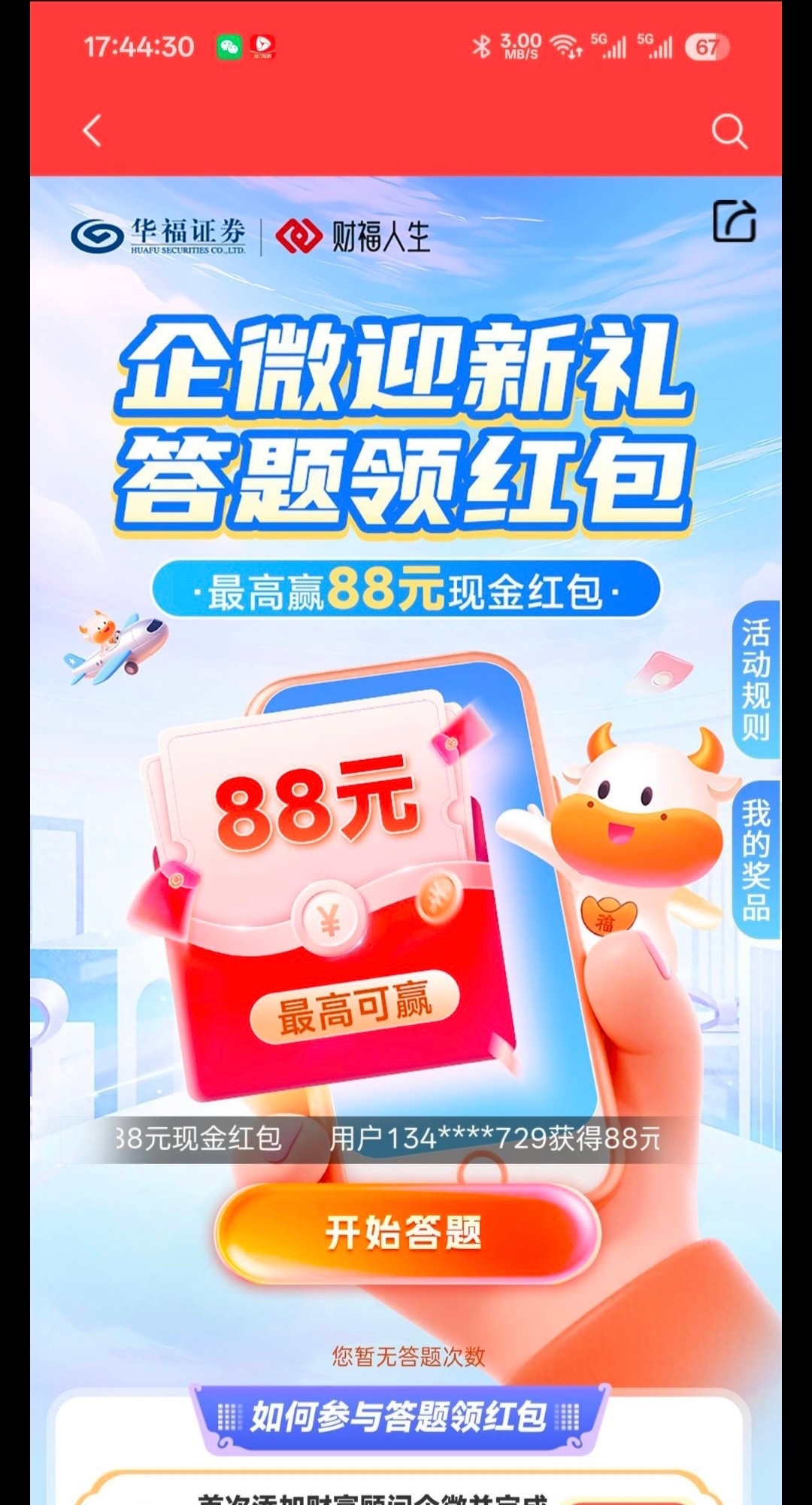 【华福证券答题6.8红包】
