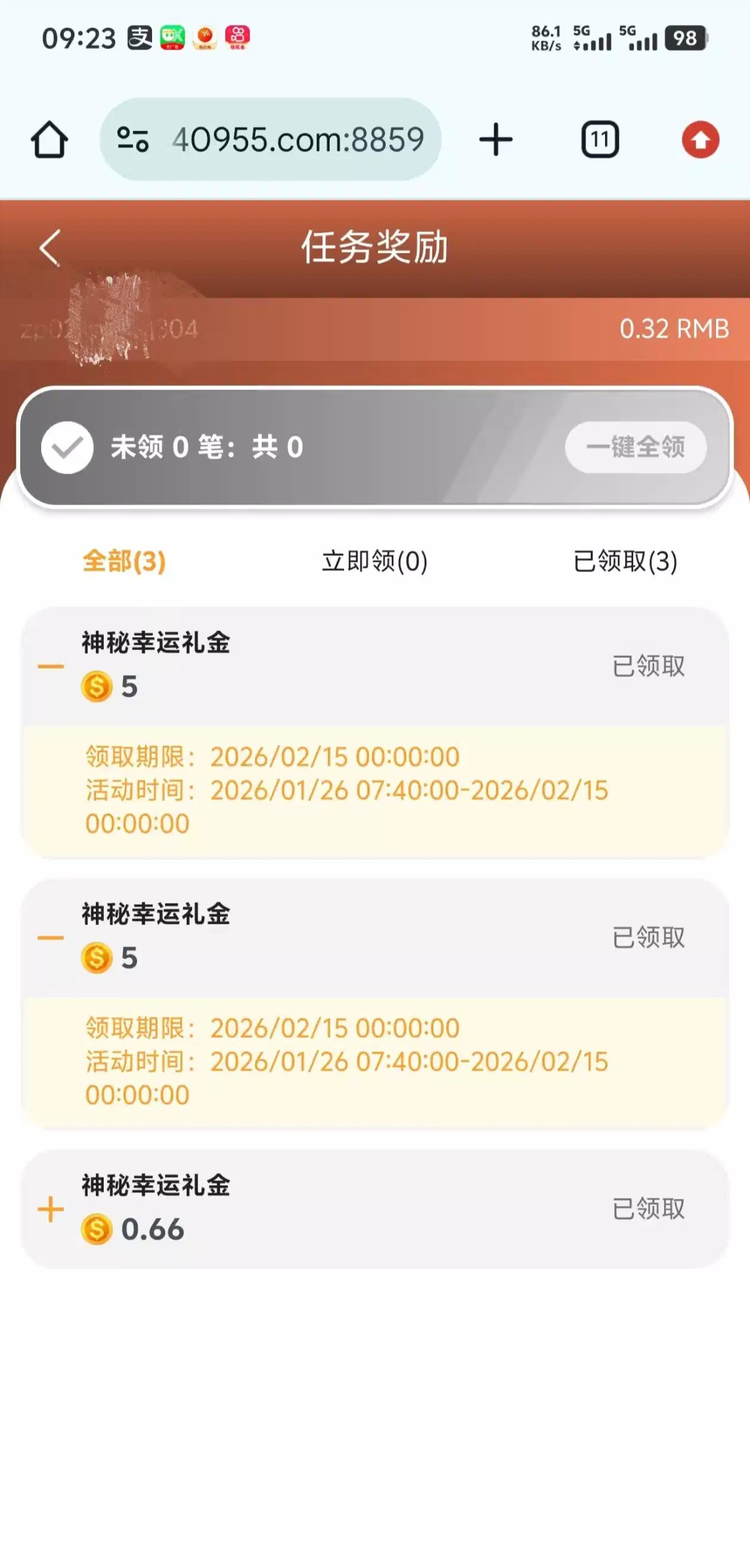 没充值 回馈了两个5