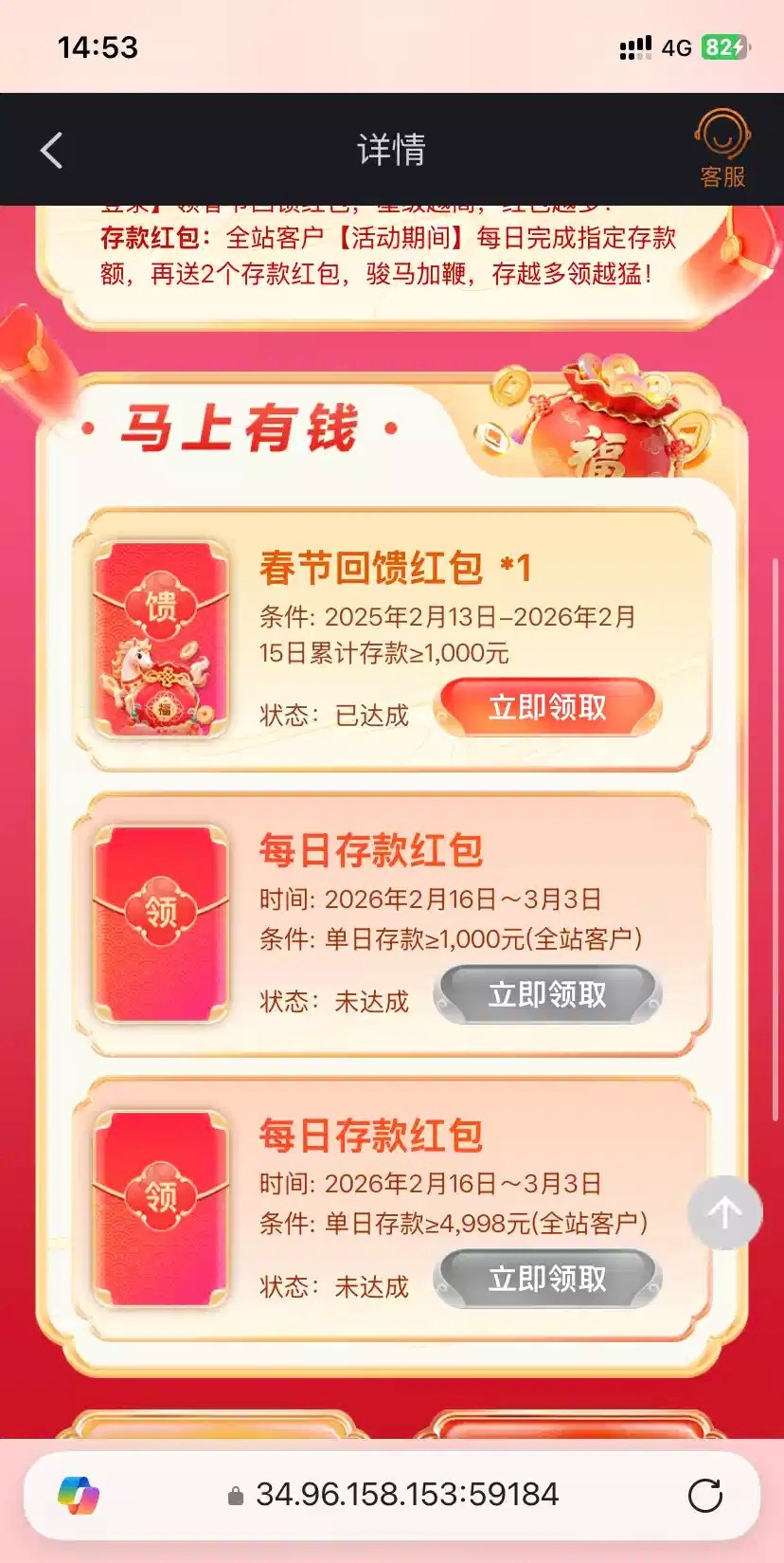 尊龙去年有存款过的可以领取回馈红包,我领了58