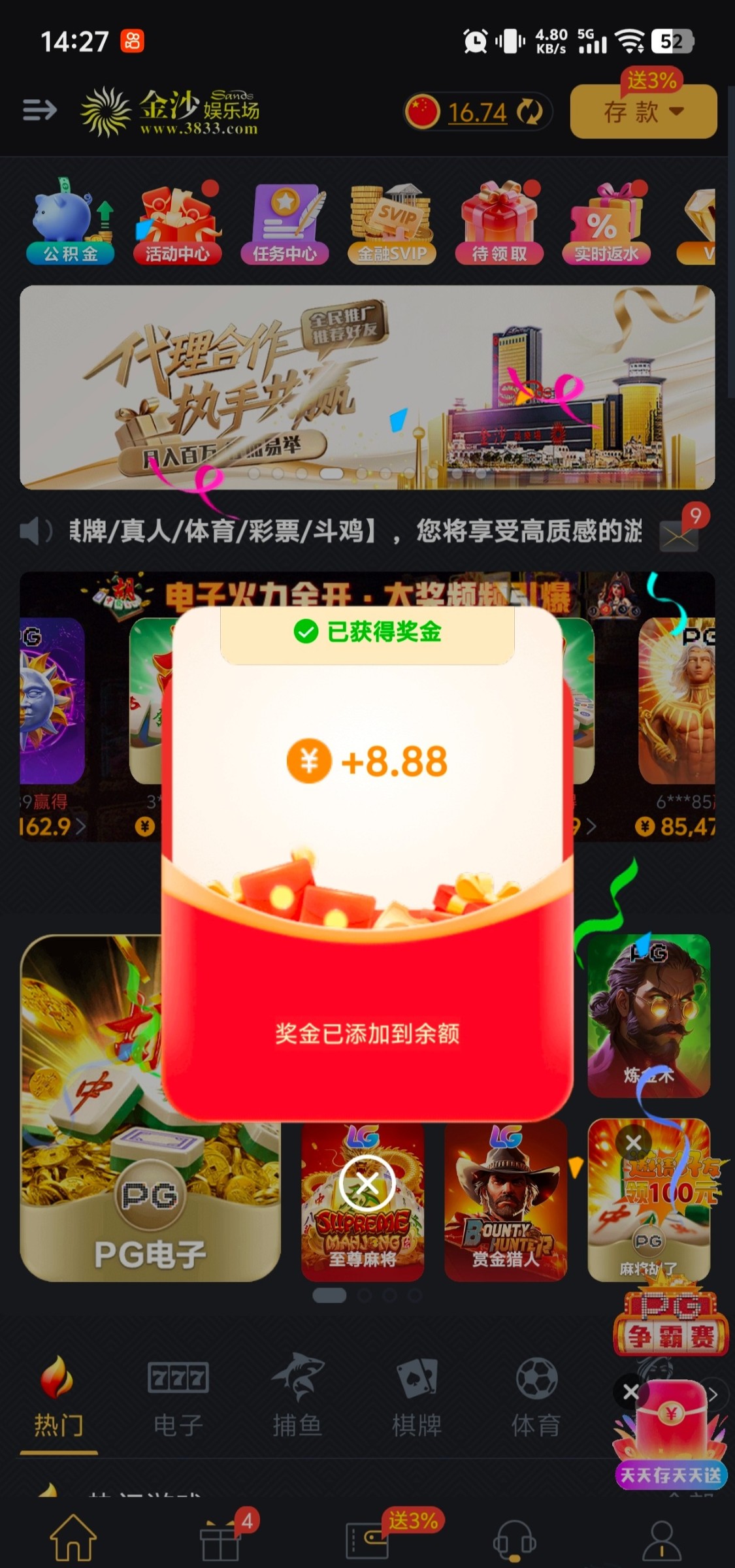 有号的上去看一下,我刚刚上去看有一个幸运福袋抢了五块加两个神秘好运金一共三十多,有号的上号看下有没有