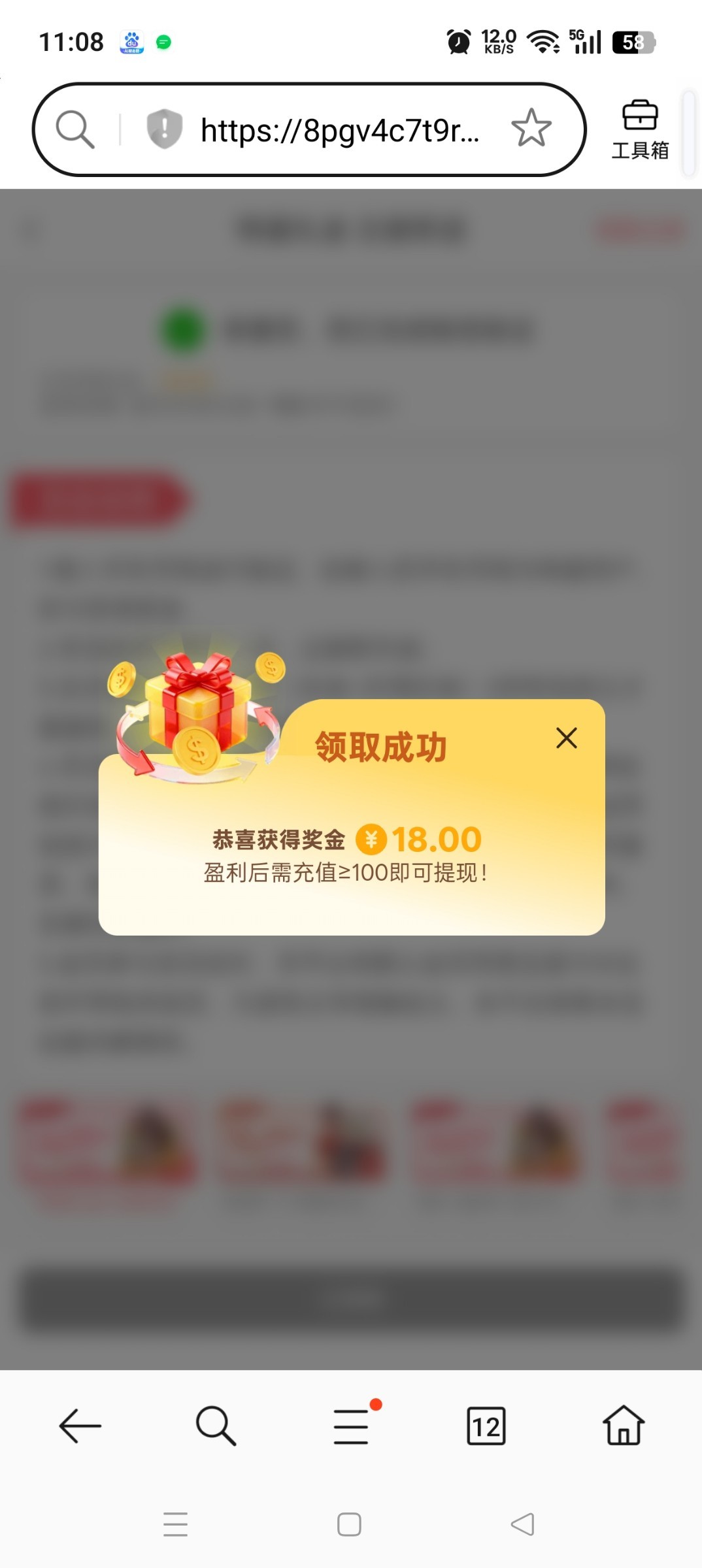 盈利后要充值一百,不知道黑不黑,充值的后果自负。不差钱的可以试试