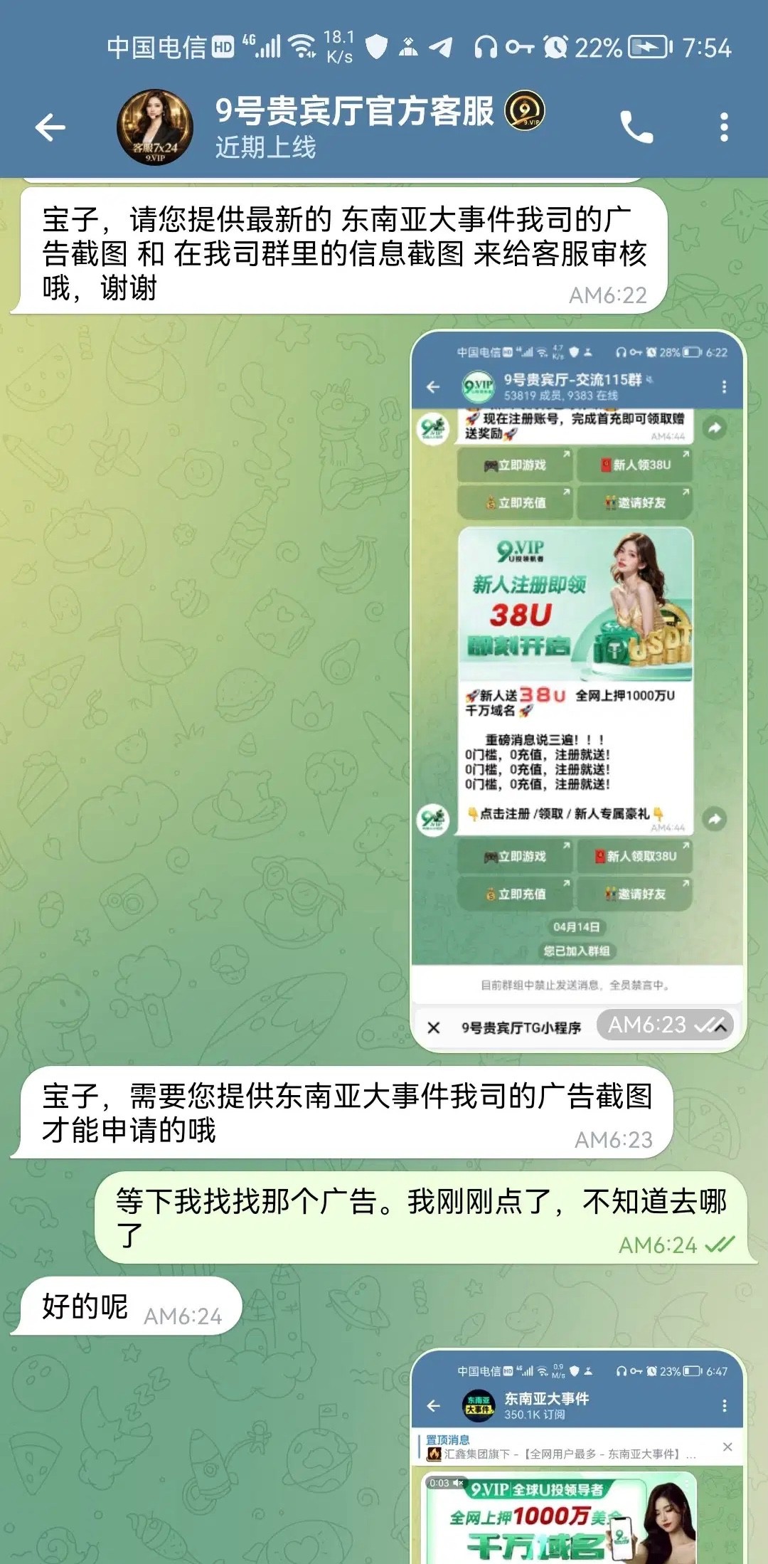 问她怎么领取38U 她会要2张图,去东南亚群找,不是特邀也能领,但是只有8u 出款情况自测,我打挂了。